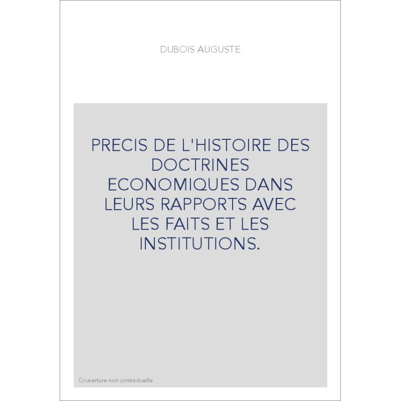 PRECIS DE L'HISTOIRE DES DOCTRINES ECONOMIQUES DANS LEURS RAPPORTS AVEC LES FAITS ET LES INSTITUTIONS.