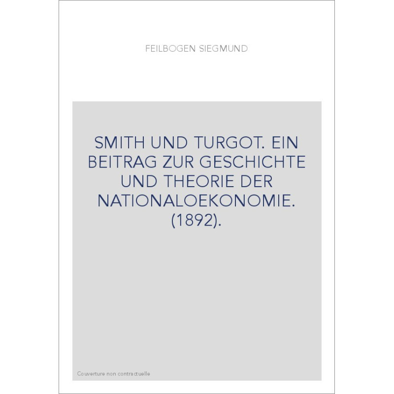 SMITH UND TURGOT. EIN BEITRAG ZUR GESCHICHTE UND THEORIE DER NATIONALOEKONOMIE. (1892).
