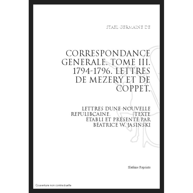 CORRESPONDANCE GENERALE T3 : LETTRES DE MEZERY ET DE COPPET. LETTRES D'UNE NOUVELLE REPUBLICAINE. 1794-1796