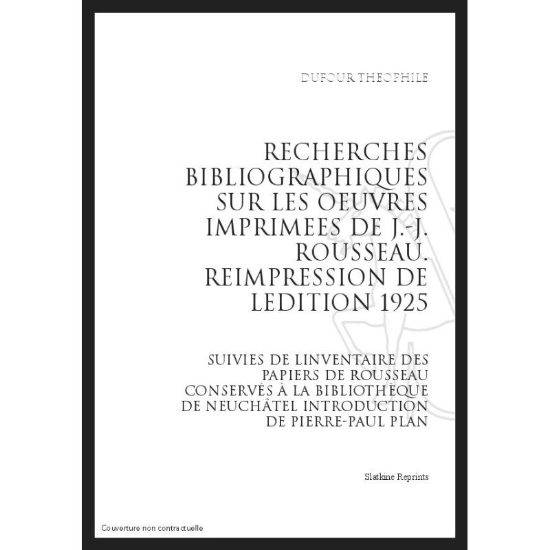 RECHERCHES BIBLIOGRAPHIQUES SUR LES OEUVRES IMPRIMEES DE JEAN-JACQUES ROUSSEAU