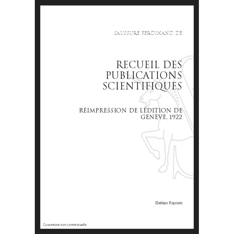 RECUEIL DES PUBLICATIONS SCIENTIFIQUES