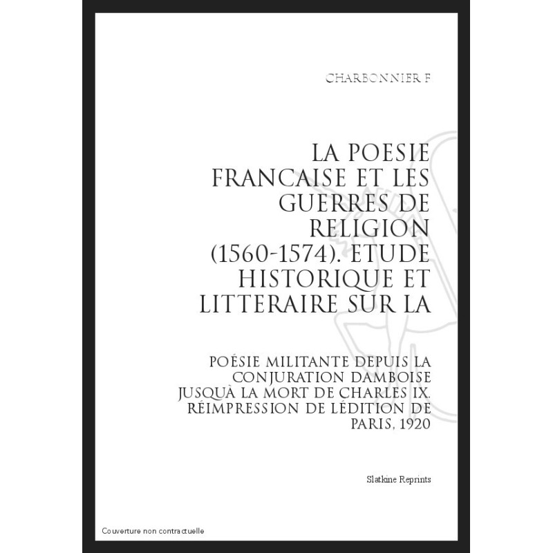 Étude historique et littéraire sur la poésie militante depuis la conjuration d'Amboise jusqu'à la mort de Charles IX. Réimpr de l'ed de Paris '20