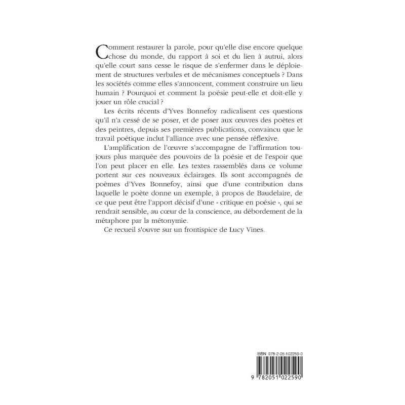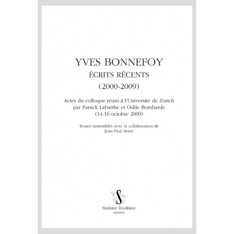 These papers are dedicated to Yves Bonnefoy, contemporary French poet and essayist. They focus on the analysis of his most recent writings between 2000 and 2009. The texts analysed in this volume are accompanied by poems and a paper written by Bonnefoy himself.