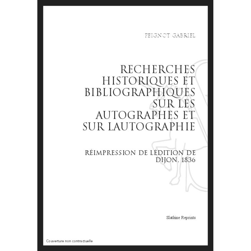 RECHERCHES HISTORIQUES ET BIBLIOGRAPHIQUES SUR LES AUTOGRAPHES ET SUR L'AUTOGRAPHIE