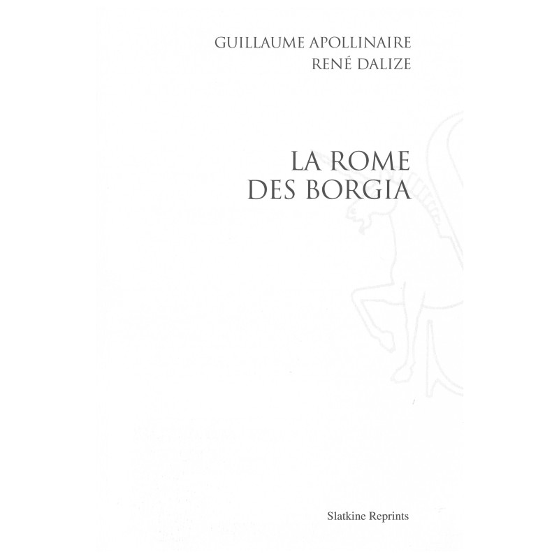 « Le manuscrit de La Rome des Borgia, qui est de l’histoire romanesque, nous a été remis par la veuve d’un illustre historien, à cette fin que l’ouvrage fût publié et le nom de l’auteur fût celé. À un travail extrêmement attrayant, mais qui, pour la dernière partie au moins (celle de la mort du pape), suit une version abandonnée par l’Histoire, nous avons joint un certain nombre de documents qui ne peuvent qu’augmenter l’intérêt historique d’un livre qui n‘est nullement dirigé contre la religion ni contre ses ministres, mais relate simplement des mœurs très différents des autres. »