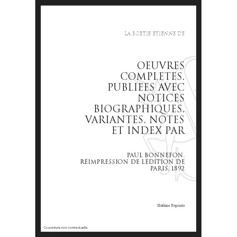 OEUVRES COMPLETES PUBLIEES AVEC NOTICES BIOGRAPHIQUES, VARIANTES, NOTES ET INDEX PAR P.BONNEFON