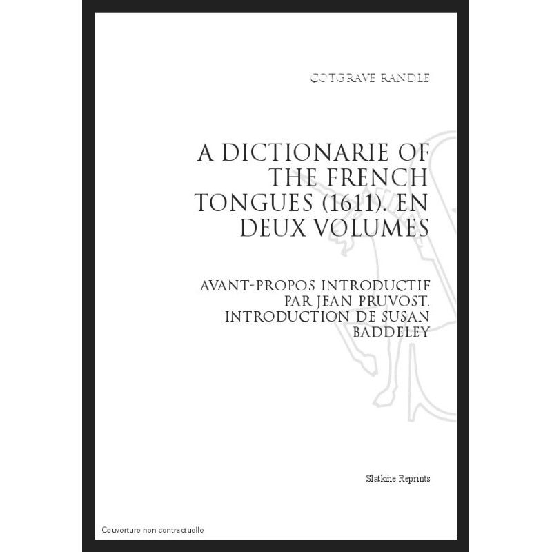 This is the new edition of the important French-English dictionary A Dictionarie of the French and English Tongues (1611) by Randle Cotgrave. This major bilingual dictionary, now more than 400 years old, also includes two studies by Susan Baddeley and Jean Pruvost.