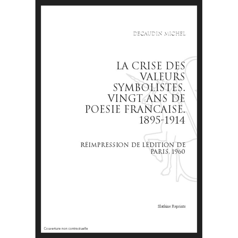 LA CRISE DES VALEURS SYMBOLISTES. VINGT ANS DE POESIE FRANCAISE, 1895-1914. (1960).