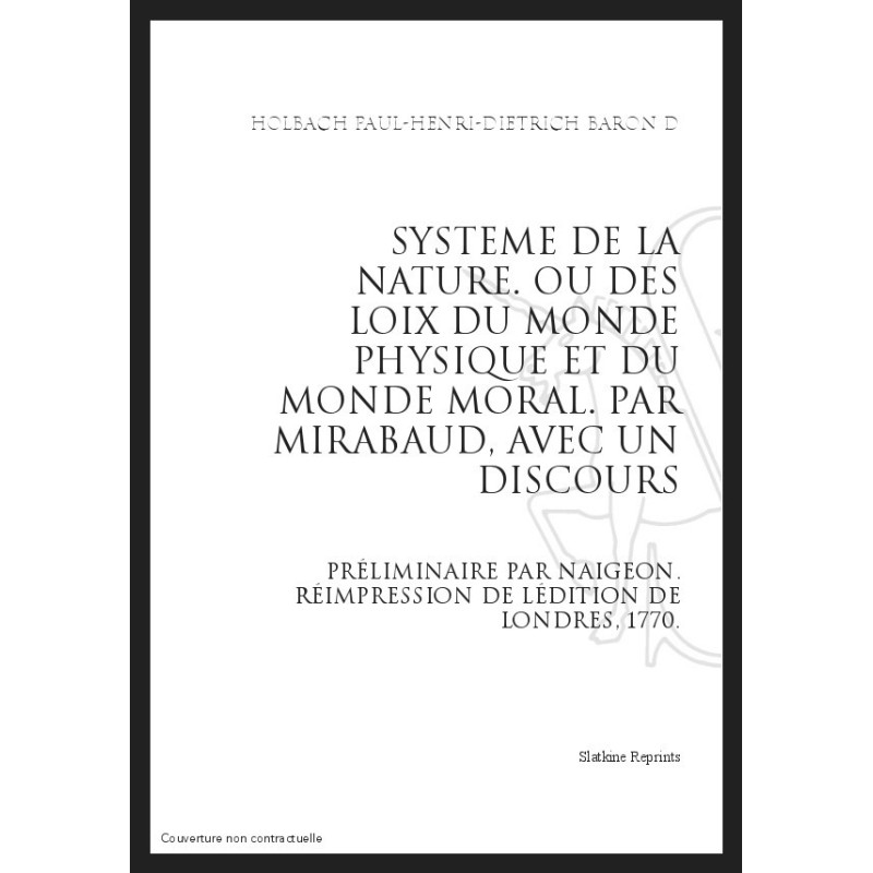 SYSTEME DE LA NATURE OU DES LOIS DU MONDE PHYSIQUE ET DU MONDE MORAL