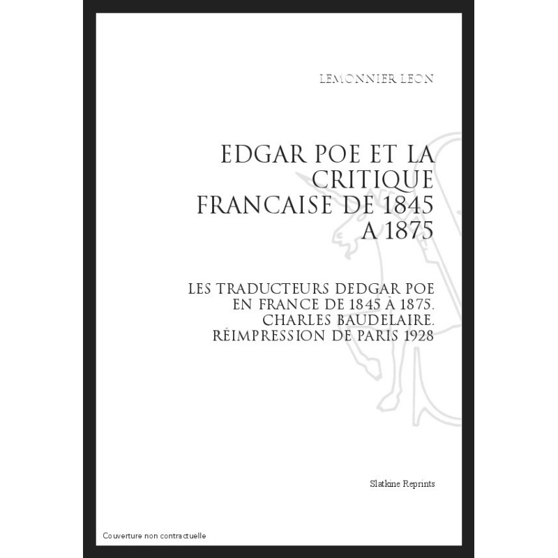 EDGAR POE ET LA CRITIQUE FRANCAISE DE 1845 A 1875 BR LES TRADUCTEURS D'EDGAR POE EN FRANCE DE 1845 A 1875