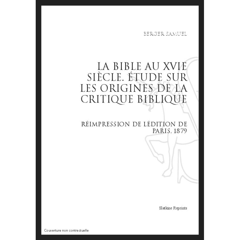 LA BIBLE AU XVI SIECLE ÉTUDE SUR LES ORIGINES DE LA CRITIQUE BIBLIQUE