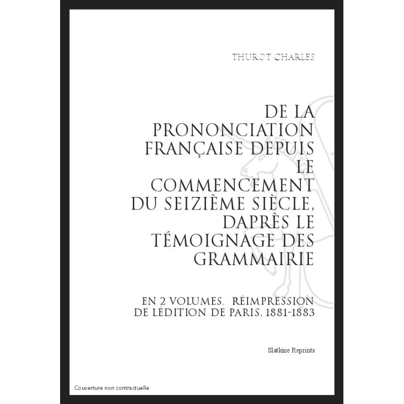DE LA PRONONCIATION FRANÇAISE DEPUIS LE COMMENCEMENT DU SEIZIÈME SIÈCLE, D'APRÈS LE TÉMOIGNAGE DES GRAMMAIRIEN