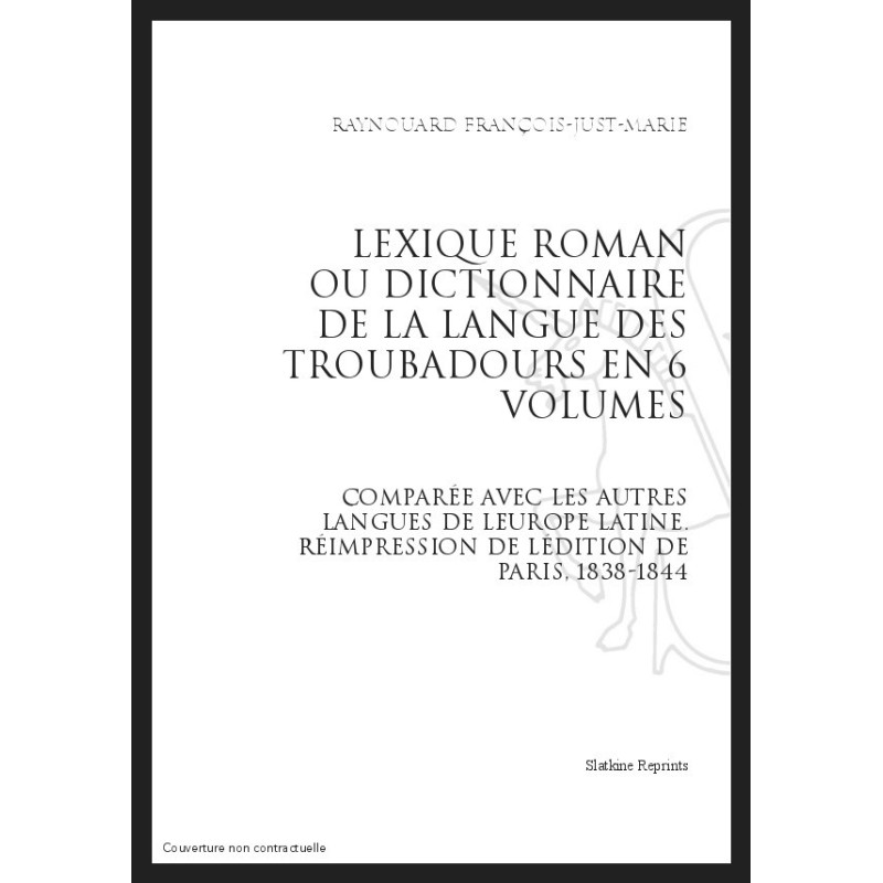LEXIQUE ROMAN OU DICTIONNNAIRE DE LA LANGUE DES TROUBADOURS COMPARÉE AC LES AUTRES LANGUES DE L'EUROPE LATINE