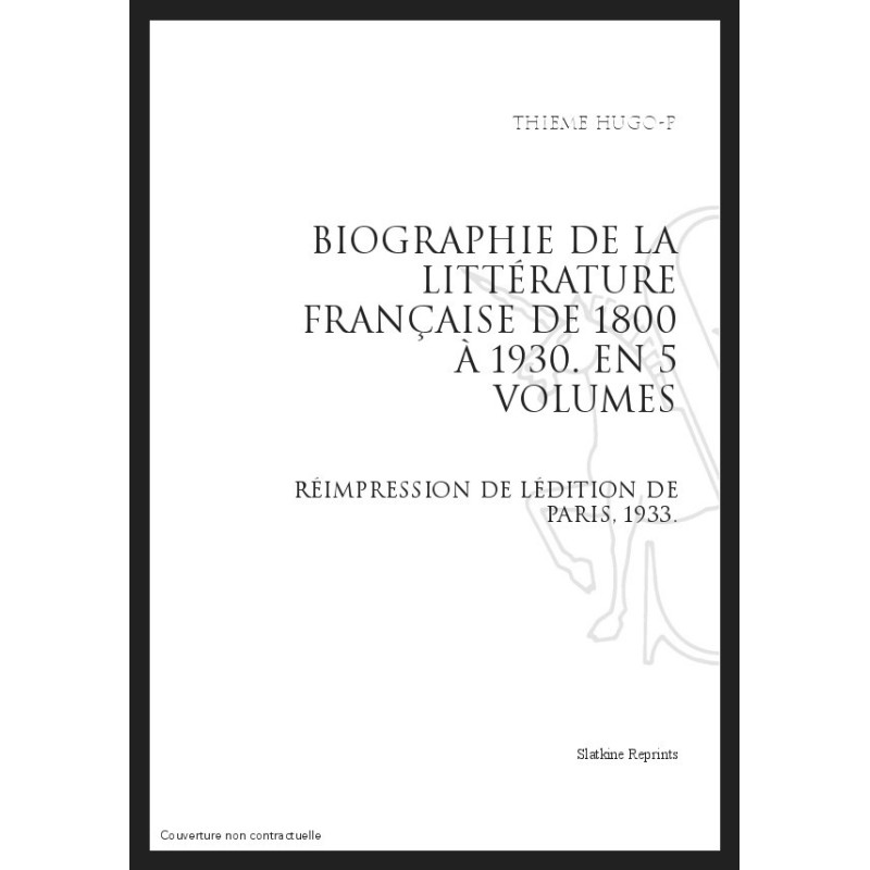 BIBLIOGRAPHIE DE LA LITTÉRATURE FRANÇAISE DE 1800 À 1930