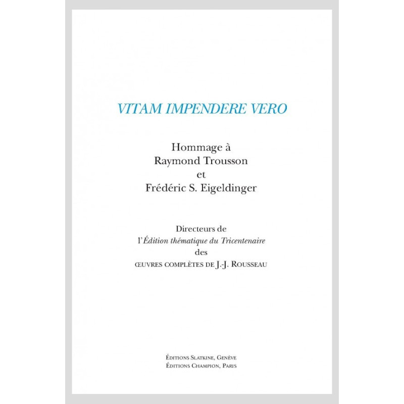 Hommage à Raymond Trousson et Frédéric S. Eigeldinger directeurs de l'édition thématique du Tricentenaire des OEuvres Complètes de J.-J. Rousseau