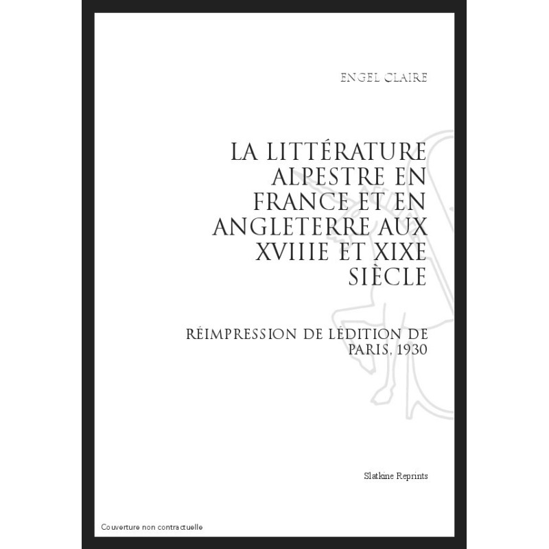 LA LITTÉRATURE ALPESTRE EN FRANCE ET EN ANGLETERRE AUX XVIIIE ET XIXE SIÈCLES