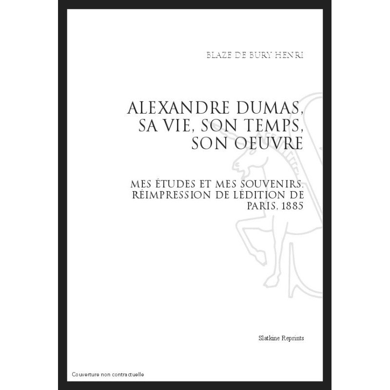 ALEXANDRE DUMAS, SA VIE, SON TEMPS, SON OEUVRE