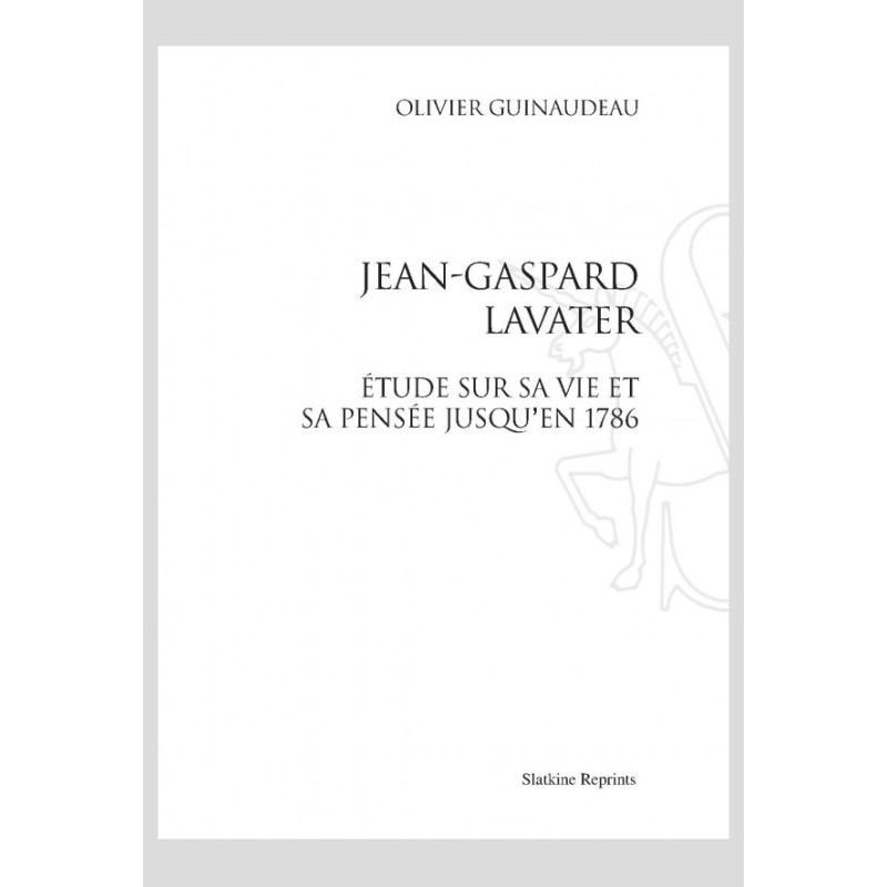 JEAN-GASPARD LAVATER ÉTUDE SUR SA VIE ET SA PENSÉE JUSQU'EN 1786