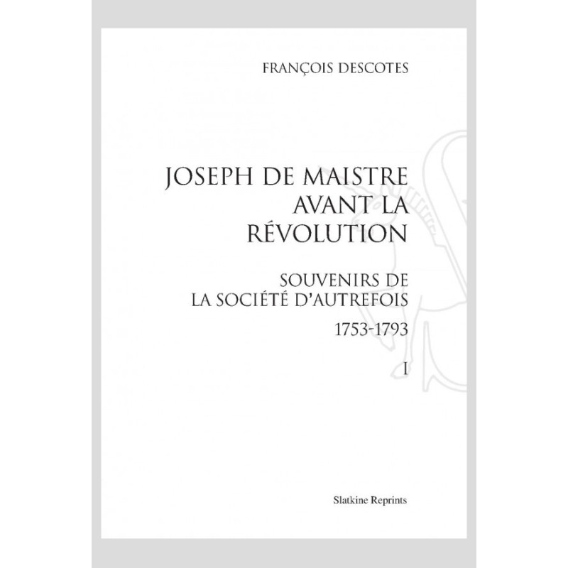 JOSEPH DE MAISTRE AVANT LA REVOLUTION.