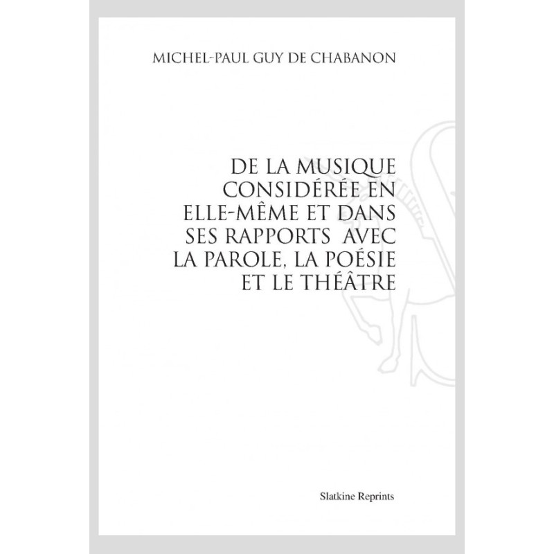 DE LA MUSIQUE CONSIDÉRÉE EN ELLE-MÊME ET DANS SES RAPPORTS AVEC LA PAROLE, LA POÉSIE ET LE THÉÂTRE