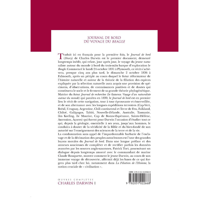 This volume of the Complete Works of Charles Darwin deals with the translation of Charles Darwin’s journal The Voyage of the Beagle which gave him wide renown as a writer. The journal includes his detailed observations and findings of plants and animals. The journal can be considered as the basis for his theory of evolution by natural selection.