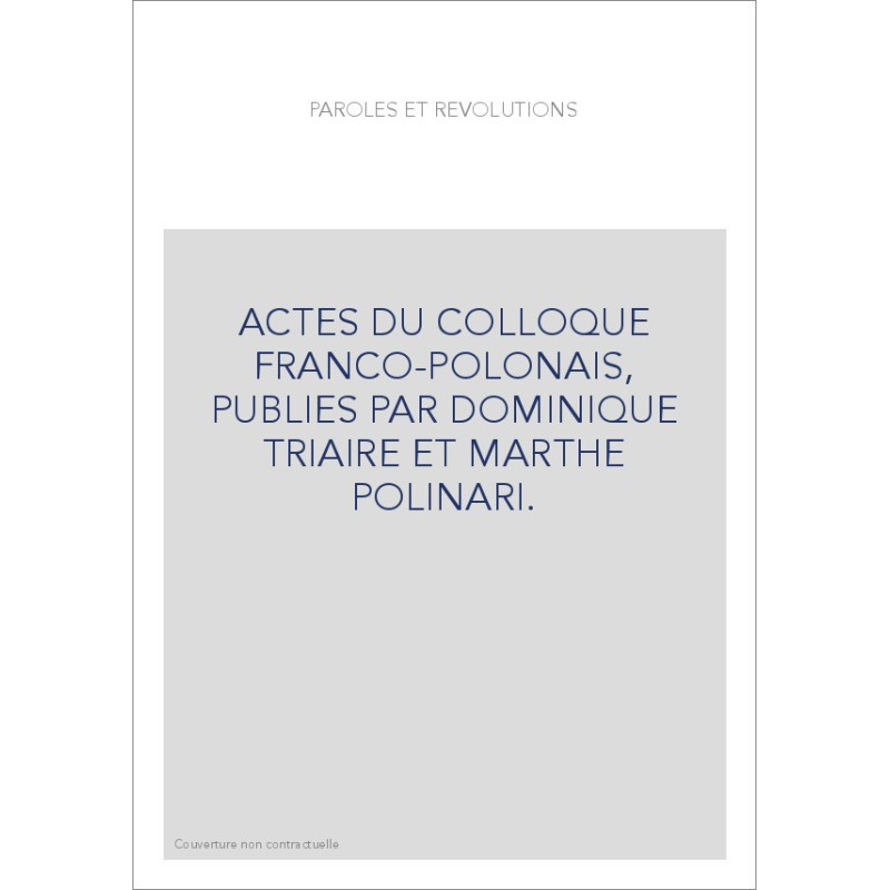 ACTES DU COLLOQUE FRANCO-POLONAIS, PUBLIES PAR DOMINIQUE TRIAIRE ET MARTHE POLINARI.