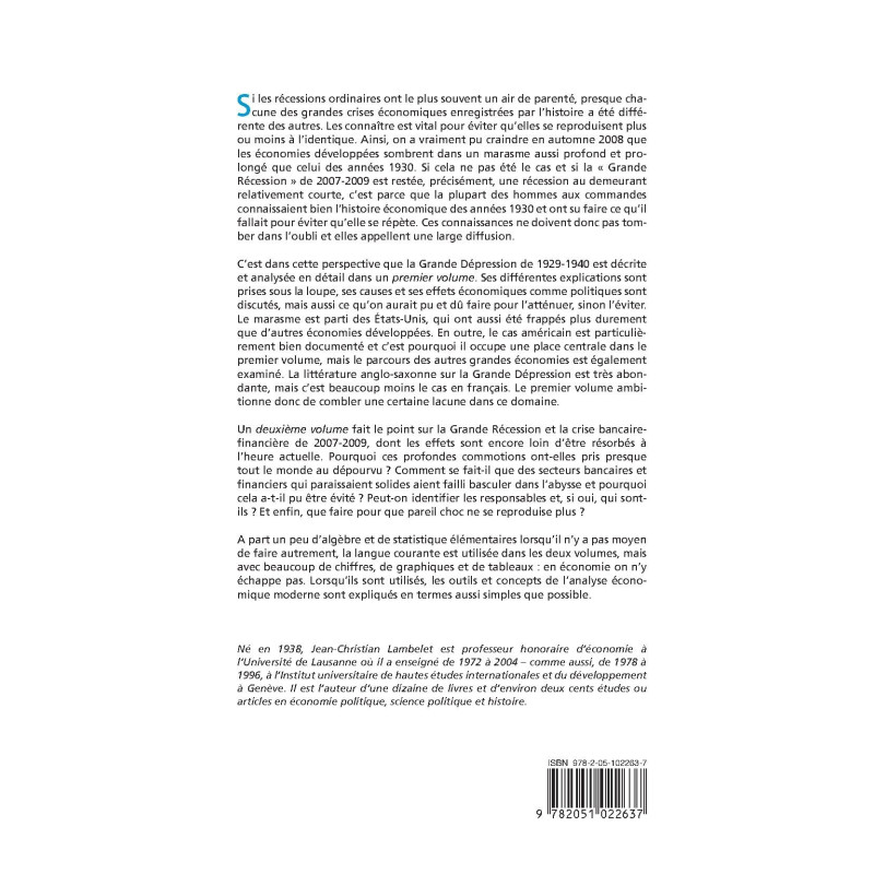 ysse et pourquoi cela a-t-il pu être évité ? Peut-on identifier les responsables et, si oui, qui sont-ils ? Et enfin, que faire pour que pareil choc ne se reproduise plus ? A part un peu d`algèbre et de statistique élémentaires lorsqu`il n`y a pas moyen de faire autrement, la langue courante est utilisée dans les deux volumes, mais avec beaucoup de chiffres, de graphiques et de tableaux : en économie on n`y échappe pas. Lorsqu`ils sont utilisés, les outils et concepts de l`analyse économique moderne sont expliqués en termes aussi simples que possible.