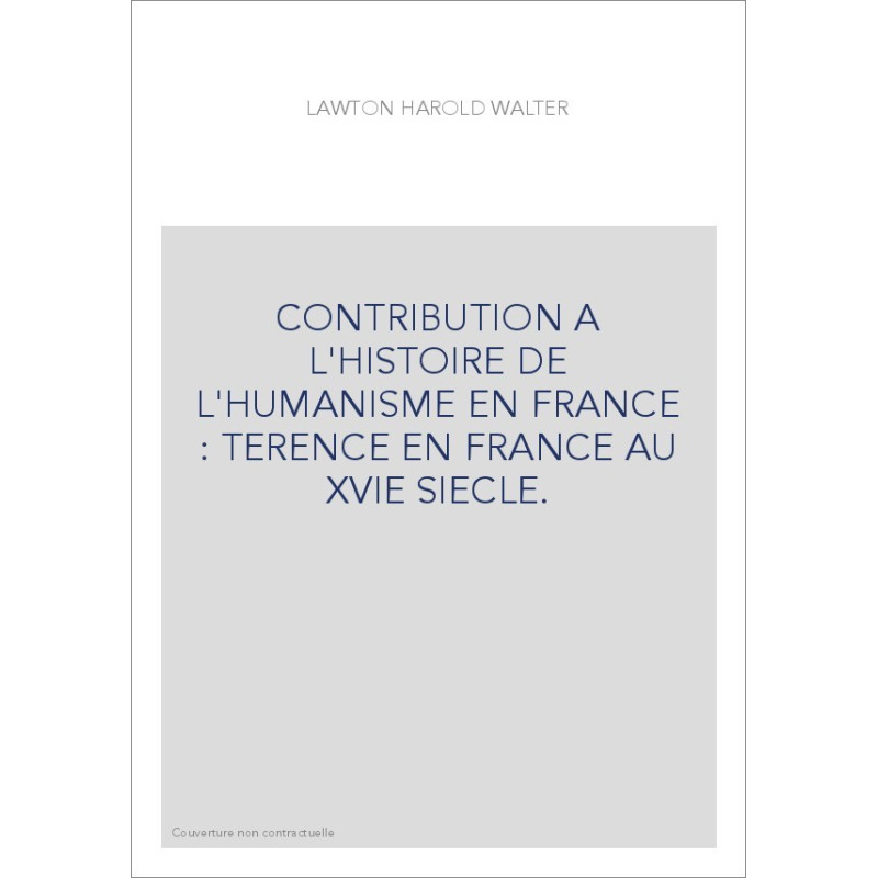 CONTRIBUTION A L'HISTOIRE DE L'HUMANISME EN FRANCE : TERENCE EN FRANCE AU XVIE SIECLE.