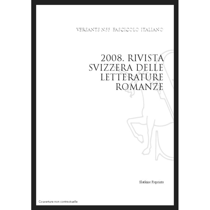 VERSANTS 55. FASCICULE ITALIEN. ANIMALI NELLA LETTERATURA ITALIANA