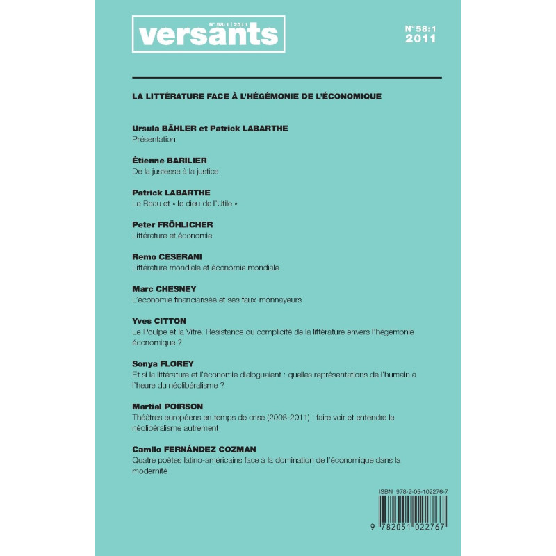VERSANTS 58/1. FASCICULE FRANCAIS
