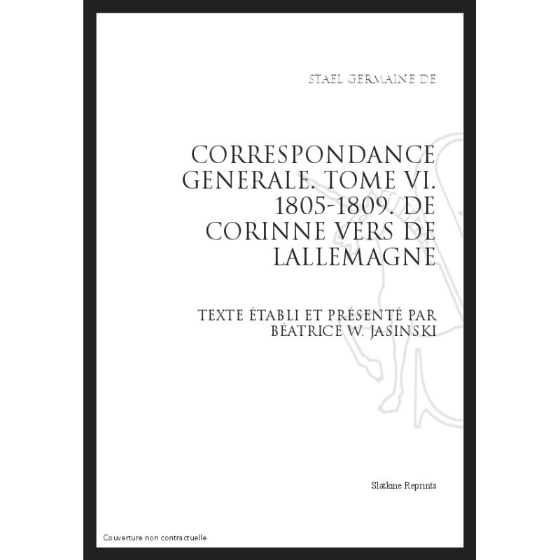 CORRESPONDANCE GENERALE T6 : DE CORINNE VERS DE L'ALLEMAGNE. 1805-1809