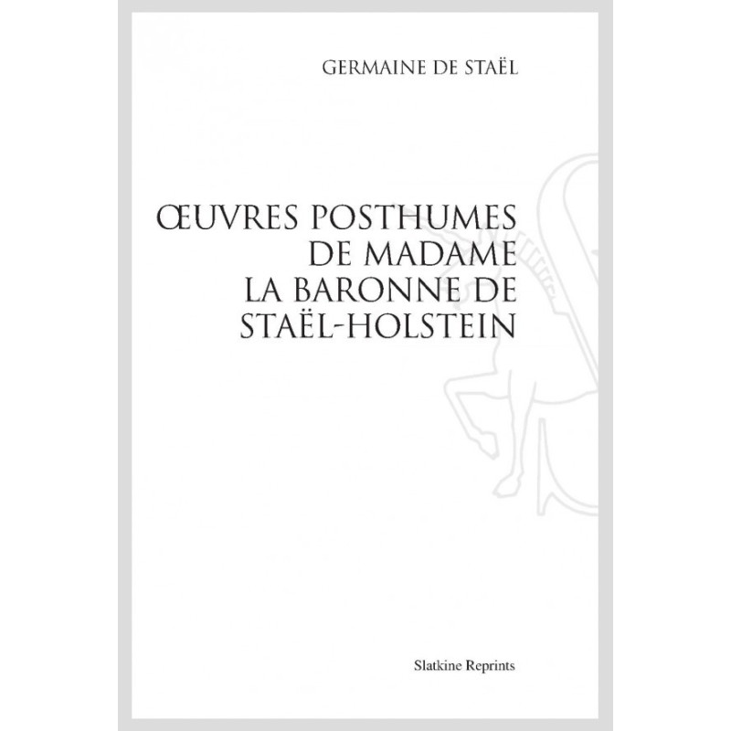 OEUVRES POSTHUMES DE MADAME LA BARONNE DE STAËL-HOLSTEIN