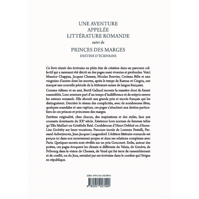 In Part I of this book, Bertil Galland recounts the “adventure” of editing French-speaking Swiss literature for half a century. In Part II, he collects and revises a number of portraits he wrote of some of his closest authors – men and women, stars and mavericks, all obsessed with deciphering life through writing.