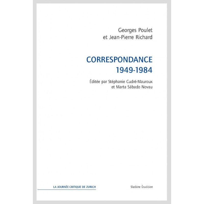 La correspondance Georges Poulet – Jean-Pierre Richard se déploie sur près de quarante ans. Bien plus que le seul témoignage d’une vive amitié intellectuelle, ces échanges racontent aussi une période clé de l’histoire littéraire en France, celle de la « nouvelle critique ». Ils constituent en outre un point de vue privilégié et nouveau pour la connaissance des œuvres de Poulet et Richard.