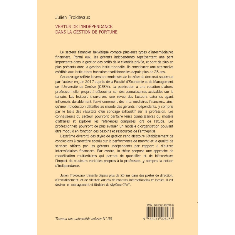 | Collection | TRAVAUX DES UNIVERSITES SUISSES |