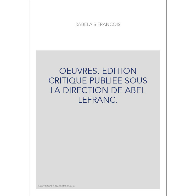 OEUVRES. EDITION CRITIQUE PUBLIEE SOUS LA DIRECTION DE ABEL LEFRANC.